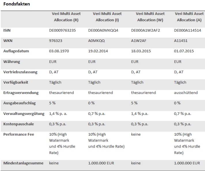 Der Veri Multi Asset Allocation Fonds der Frankfurter Fondsboutique Veritas Investment befindet sich weiter auf Erfolgskurs. Seit der strategischen Neuausrichtung im Februar 2013 erzielte der Fonds eine durchschnittliche Rendite von 4,2 Prozent jährlich – und das trotz einer konservativen Ausrichtung, die Wertverluste auch in äußerst schwachen Marktphasen begrenzt.