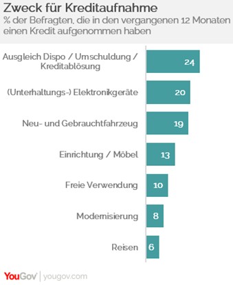„Der häufigste Anlass für die Kreditaufnahme ist damit die eigene Kauflust oder zumindest die des Lebenspartners. Zusätzlich werden Verbraucher auch durch Werbung und Angebote im Internet stimuliert, die Vorfreude schneller in wahren Genuss umzuwandeln“, sagt Dr. Oliver Gaedeke, Vorstand und Leiter der Finanzmarktforschung bei YouGov.
