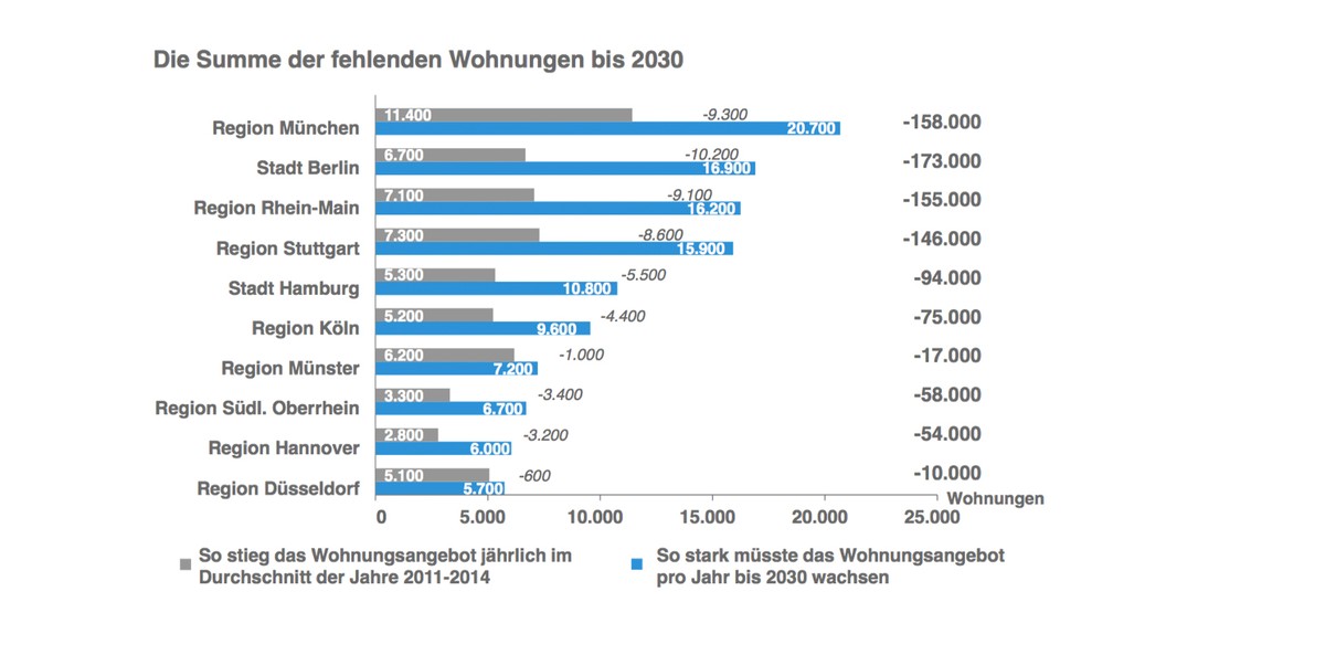 Die wirtschaftsstarken Regionen sollten deshalb gemeinsam mit ihren benachbarten Regionen Lösungen für die Ungleichgewichte an den Wohnungsmärkten erarbeiten und umsetzen. "Dafür müssen sich alle Verantwortlichen aus Politik und Wirtschaft an einen Tisch setzen", sagt Peter Haueisen.