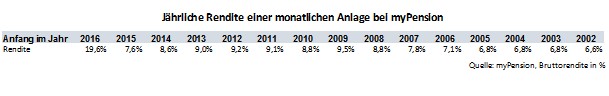 myPension Portfolio zeigt fortdauernd hohen Wertzuwachs - Rendite in den vergangenen 15 Jahren stets über sechs Prozent