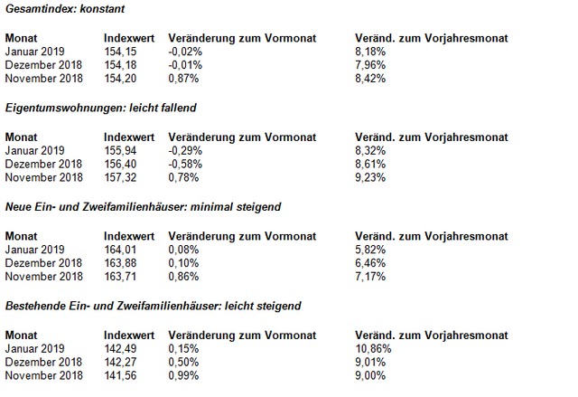 Gesamtindex der Immobilienpreise erneut praktisch unverändert