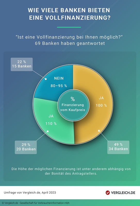 · Ja, eine 100%-Finanzierung ist möglich (49%, 34 Banken)