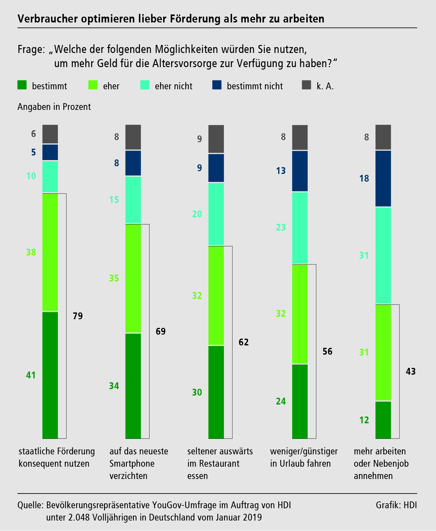 Das Meinungsforschungsinstitut YouGov befragte im Januar 2019 im Auftrag von HDI 2.048 Volljährige in Deutschland. Die Ergebnisse sind gewichtet und bevölkerungsrepräsentativ.