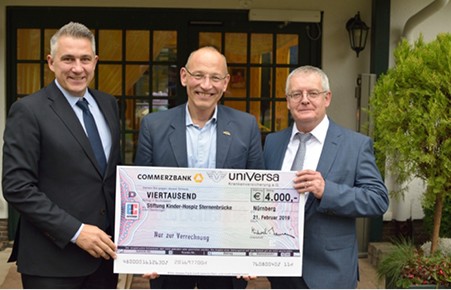 Die uniVersa Versicherungsunternehmen unterstützen in diesem Jahr über die Aktion Spenden statt Schenken die Hospizarbeit. Jeweils 4.000 Euro übergab Vorstandsvorsitzender Michael Baulig mit einem Spendenscheck an den Hospiz Verein Erlangen sowie an die Stiftung Kinder-Hospiz Sternenbrücke in Hamburg.