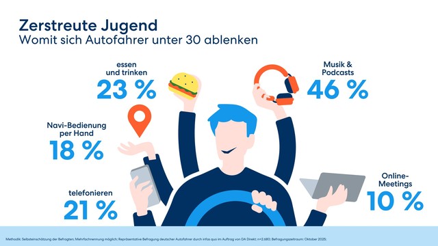 Die Gedanken sind frei: Je jünger, desto abgelenkter - DA Direkt Ablenkungsstudie 2025 zeigt Risiken und Trends im Straßenverkehr