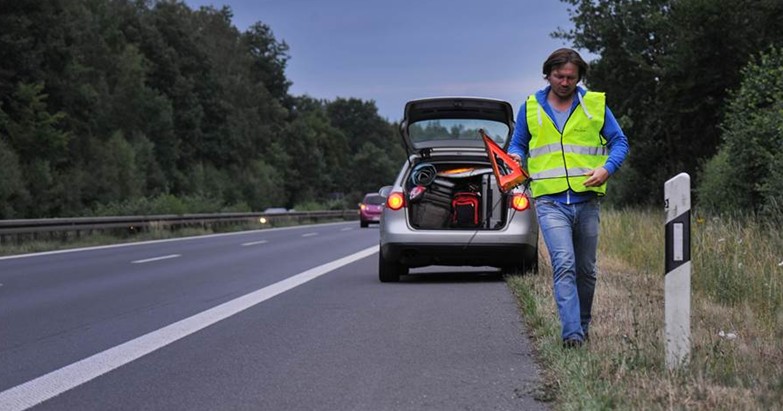 Das Aufstellen auf Landstraßen und Autobahnen ist ein nicht ganz ungefährliches Unterfangen. Zum eigenen Schutz läuft man ganz weit rechts, am äußersten Fahrbahnrand – noch besser: das Laufen hinter der Leitplanke. Wer das Warndreieck aufgeklappt vor sich her trägt, verbessert zusätzlich seine Sichtbarkeit.