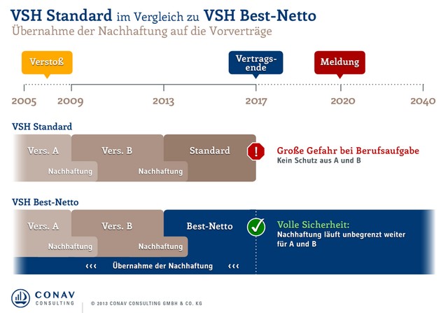 - Absicherungen in VSH-Verträgen sollten sich nach dem Risiko der Vermittler richten, nicht der Vermittler nach VSH-Angeboten - Bei häufigem Wechsel steigt das Risiko einer unzureichenden Nachhaftung