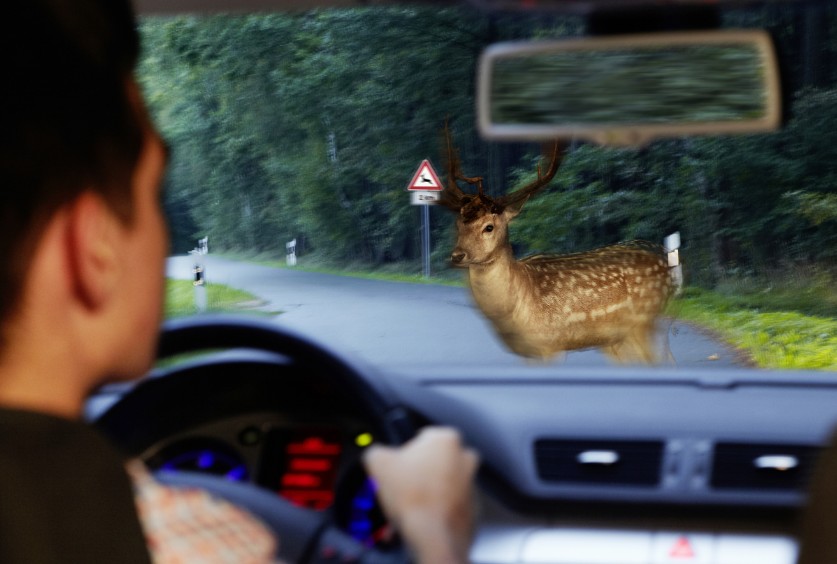 Foto: HUK-COBURG. Wildunfälle sind keine Seltenheit: Circa 250.000 Autofahrer müssen ihr Auto deshalb pro Jahr in die Werkstatt bringen. Mit dem richtigen Verhalten lässt sich mancher Unfall vermeiden.