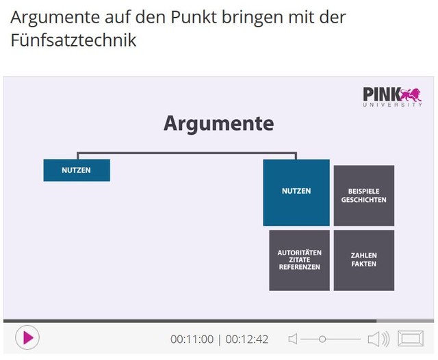 • Screenshot_2: Ansicht eines Videos: In den Schulungsvideos der Pink University werden verschiedenste Formate eingesetzt, z.B. Schaubilder, Animierte Grafiken, Splitscreen-Technik, Schauspielszenen oder Video-Scribing