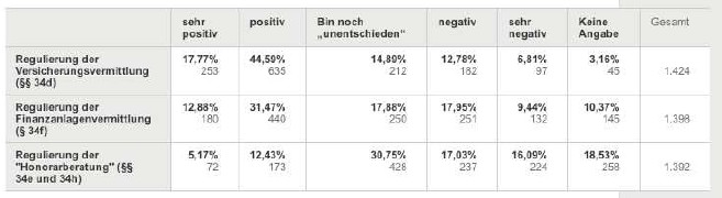 Die anstehende Regulierung der Immobilienkreditvermittlung wirft ihre Schatten voraus. Laut dem AfW-Vermittlerbarometer wird fast jeder zweite Vermittler (47,9 Prozent) eine Erlaubnis zur Vermittlung von Immobiliardarlehen nach § 34i Gewerbeordnung beantragen, wenn die gesetzlichen Regelungen sowie die Kosten (für die Erlaubniserteilung, Vermögenschaden-Haftpflicht, Sachkundeprüfung etc.) vergleichbar mit den bereits abgeschlossenen Regulierungen für die Paragrafen 34d und 34f GewO wären.