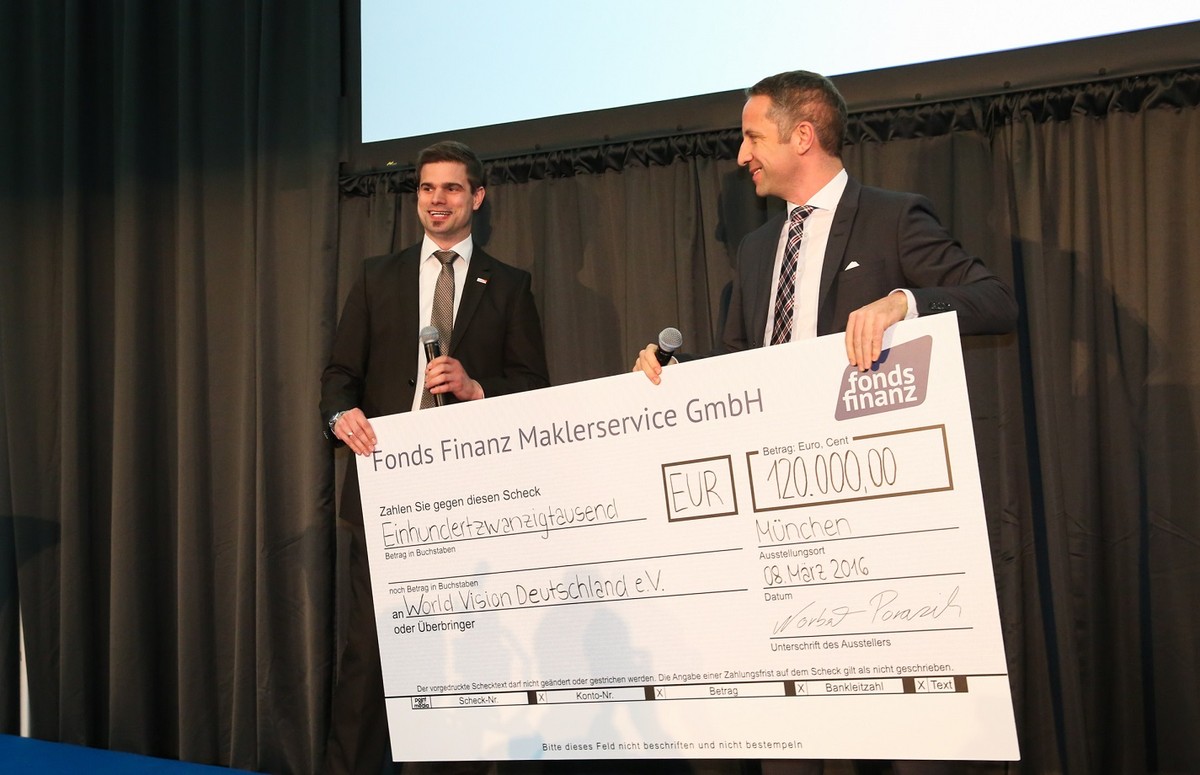Zum Abschluss des Messetages überreichte Norbert Porazik einen Spendenscheck über 120.000 Euro an World Vision Deutschland e. V., mit dem die humanitären Projekte des Vereins finanziell unterstützt werden.