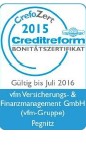 Das Bonitätszertifikat CrefoZert dokumentiert unsere Unternehmensbonität und basiert auf einer professionellen Jahresabschlussanalyse durch die Creditreform Rating AG sowie den Bonitätsinformationen der Creditreform Wirtschaftsdatenbank