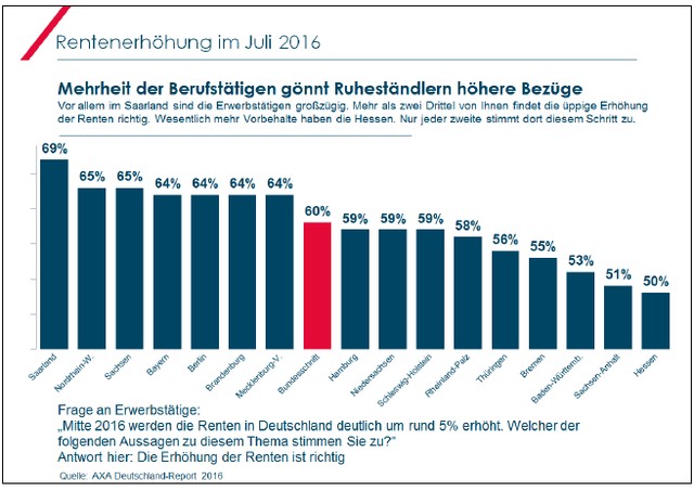 69 Prozent halten dort steigende Renten für die richtige Entscheidung / Bundesweit sind es 60 Prozent / Nur 18 Prozent wollen Geld in Rentenkassen für schwierige Zeiten ansparen
