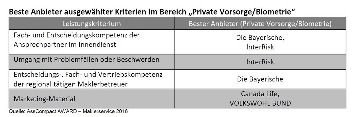 Bei welchen Unternehmen ist der Makler König? AssCompact AWARD – Maklerservice 2016