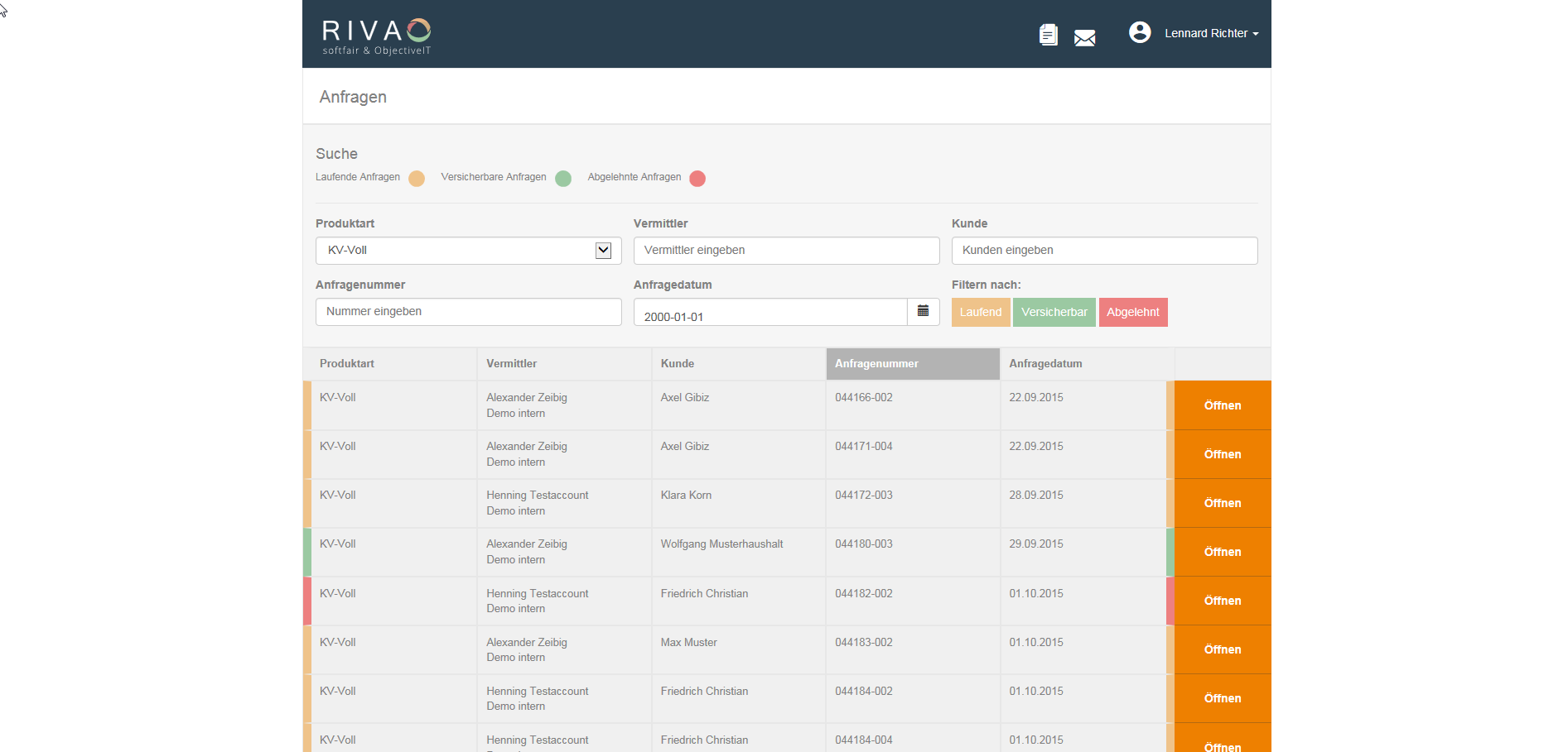 RiVa hat den Risikovoranfrageprozess revolutioniert. Es ist die erste Voranfrageplattform, die für alle Bereiche der Personenversicherung nutzbar ist: für Lebens- Existenzschutz- und Krankenversicherungen. Vor dem Einstieg in die eigentliche Risikoanfrage steht der bei den Anwendern von Anfang an beliebte „Quick-Check“ – der Check zur anbieterindividuellen Ersteinschätzung der Versicherbarkeit von schweren Vorerkrankungen.