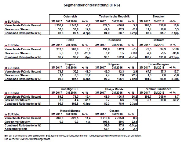 Vienna Insurance Group im 1. Quartal 2017: Plus bei allen wichtigen Unternehmenskennzahlen