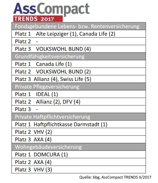 Die Studienreihe „AssCompact TRENDS" untersucht in regelmäßigen Abständen die Meinung der Vermittler zu Produkten, Anbietern und dem Marktgeschehen und deutet diese als wichtigen Indikator für die Stimmungslage im Vertrieb von Versicherungs- und Finanzdienstleistungen. Darüber hinaus geben die TRENDS-Studien Auskunft über die von unabhängigen Vermittlern favorisierten Produktanbieter je Sparte und untersuchen die Erwartungen für die Zukunft und der Produkttrends. Das Sonderthema der Studie im 2. Quartal 2017 lautet „Schadenmanagement/Schadenregulierung".