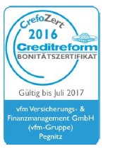 Das Bonitätszertifikat CrefoZert dokumentiert unsere Unternehmensbonität und basiert auf einer professionellen Jahresabschlussanalyse durch die Creditreform Rating AG sowie den Bonitätsinformationen der Creditreform Wirtschaftsdatenbank.