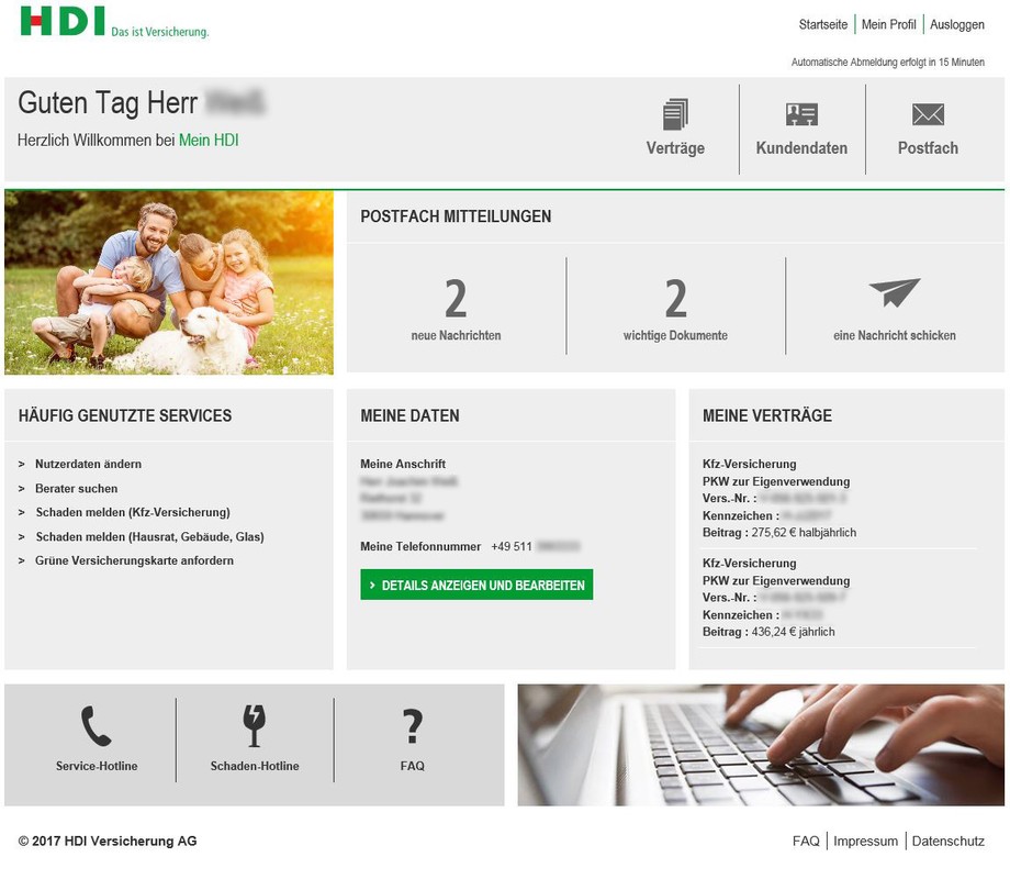 Gegen Papier und für die schnelle Kommunikation mit dem Versicherer entscheiden sich immer mehr Kunden. Mehr als 50.000 Kunden der HDI Versicherung nutzen deshalb das Self-Service-Portal mit Kundenkonto. Dies bietet ihnen die Möglichkeit, schnell, einfach und von jedem Rechner oder Mobilgerät mit Internet-Zugang auf ihre Versicherungsverträge zuzugreifen.
