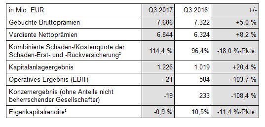 Eckdaten der Ergebnisrechnung Talanx-Konzern, Q3 2017, konsolidiert (IFRS)