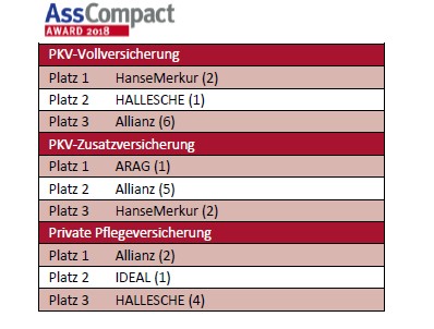 AssCompact AWARD – Private Kranken- und Pflegeversicherung 2018: Die Karten sind neu gemischt