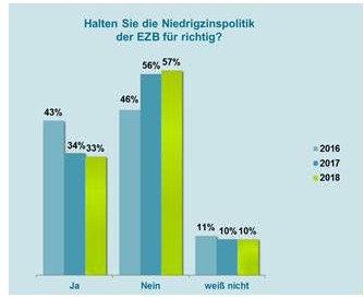 Die Sorge um einen sinkenden Lebensstandard hegt über alle Altersgruppen die Hälfte der Deutschen, unter den 30- bis 44-Jährigen befürchten sogar 57 Prozent, dass ihre Geldanlagen später nicht ausreichen, um ihren jetzigen Lebensstandard zu halten. Bei den 45- bis 59-Jährigen sind es mit 60 Prozent noch etwas mehr. Die Angst vor einem Auseinanderbrechen der Eurozone ist hingegen trotz des bevorstehenden Brexit mit 30 Prozent deutlich gesunken (Vorjahr 38 Prozent).