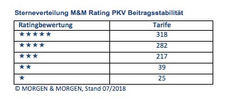 Das unabhängige Analysehaus MORGEN & MORGEN hat erstmalig die Unisex-Tarife der PKV auf ihre Stabilität hin geprüft. Das neu aufgelegte M&M Rating PKV Beitragsstabilität verbessert die Transparenz somit maßgeblich. Insgesamt vergibt MORGEN & MORGEN an 318 der 879 analysierten Tarifkombinationen die beste Bewertung.