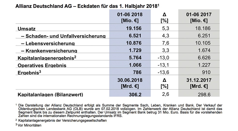 Geschäftsergebnisse 1. Halbjahr 2018 Allianz setzt Wachstumskurs fort