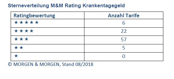 Das unabhängige Analysehaus MORGEN & MORGEN hat erstmalig die Bedingungswerke der Krankentagegeldtarife durchleuchtet. Sechs Tarife erhalten eine 5-Sterne-Bewertung und insgesamt wurden 90 Tarife von 32 Anbietern im Bereich Zusatzversicherung analysiert.