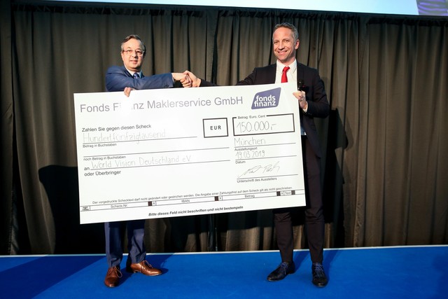 Rund 170 Gesellschaften präsentierten aktuelle Produkte und Leistungen. In den beiden Themenforen Investment und Baufinanzierung & Bankprodukte konnten sich die Fachbesucher noch gezielter informieren. Zahlreiche Sonderaktionen sorgten zudem für einen regen Austausch an den Ständen. Die Fonds Finanz selbst bot als Premiumpartner des TSV 1860 München ein besonderes Highlight: eine Autogramm- und Fotostunde mit den beiden Löwen Jan Mauersberger und Hendrik Bonmann. Darüber hinaus überreichte Geschäftsführer Norbert Porazik erneut einen Spendenscheck an World Vision Deutschland e.V. über 150.000 Euro.