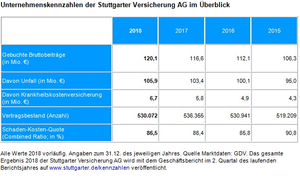 Schaden- und Unfallbereich der Stuttgarter: Beitragseinnahmen 2018 auf Rekordhoch