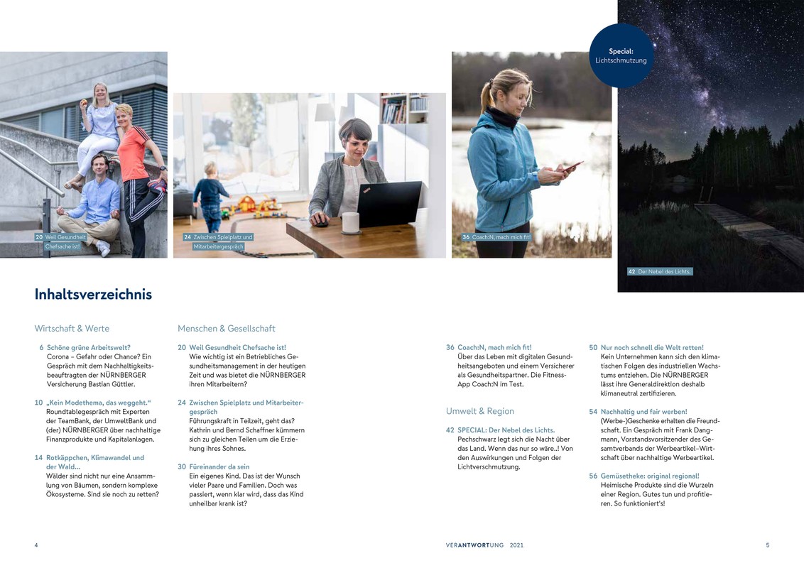 Klimaneutralität, grüne Kapitalanlagen und Lichtsmog: Nürnberger Versicherung veröffentlicht neues Nachhaltigkeitsmagazin