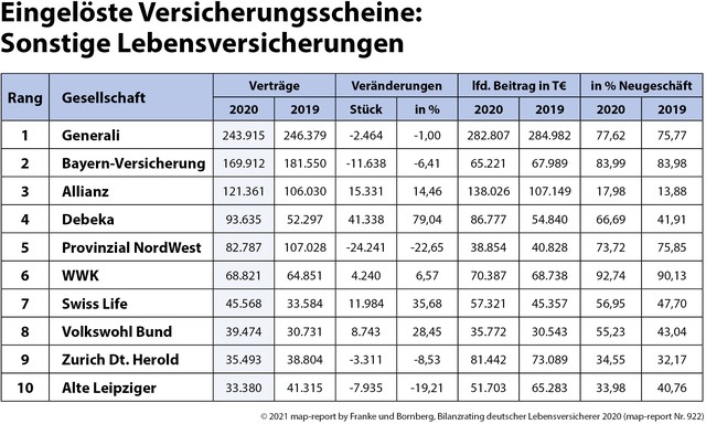 map-report Nr. 922: Bilanzrating deutscher Lebensversicherer 2020