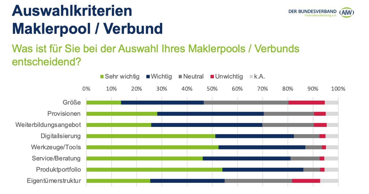 Ohne die Unterstützung bei Produktauswahl, Beratungstools und Dokumentation kommen Finanzanlagen- und Versicherungsvermittler heutzutage auf keinen grünen Zweig mehr. Der AfW hat im Rahmen eines umfassenden Stimmungsbildes der Branche eruiert, wie und wofür Vermittlerinnen und Vermittler Maklerpools und Verbünde nutzen.