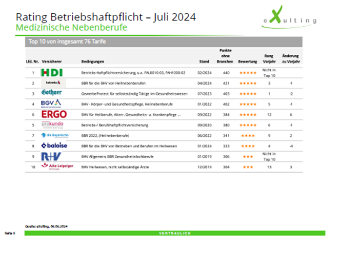 Rating 08/2024 zur Betriebshaftpflichtversicherung