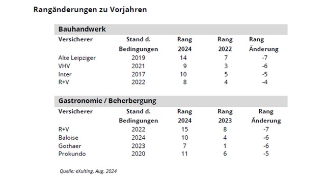 Sparkassen-Versicherung. Einige von ihnen erreichen sogar Spitzenpositionen und verdrängen die bisherigen Favoriten. Bemerkenswert ist, dass nicht nur ältere Bedingungswerke (Alte Leipziger, Inter), sondern auch jüngere (Baloise, Gothaer) von deutlichen Platzverlusten betroffen sind.