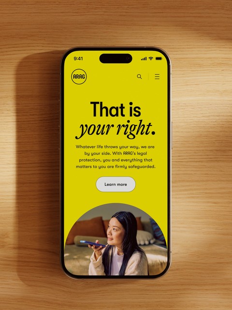 Die Überarbeitung des Logos umfasst ein dezentes Facelifting, bei dem die charakteristischen Elemente – insbesondere die Typografie – erhalten bleiben. Die Farbwelt wurde erweitert: Das markante ARAG Gelb erhält durch Sand-Töne und ein klares Weiß neue Kontraste und Gestaltungsmöglichkeiten.