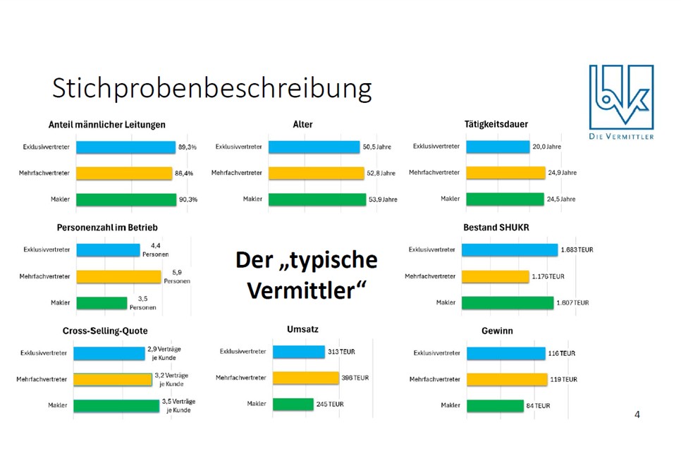 Deshalb untersuchte der BVK im Rahmen seiner aktuellen Strukturanalyse die Anteile der Bonifikationen an den Gesamteinnahmen der Vermittlerschaft. Solche Anreize spielen traditionell eine größere Rolle im Exklusivvertrieb und bei Mehrfachvertretern, es gibt sie aber auch immer noch bei Maklern. So betragen Bonifikationen bei Maklern 4,7 Prozent an den Gesamtumsätzen. Bei Exklusivvertretern und bei Mehrfachvertretern sind 9,3 bzw. 11,1 Prozent der Gesamteinnahmen variabel und haben dadurch mehr Gewicht.