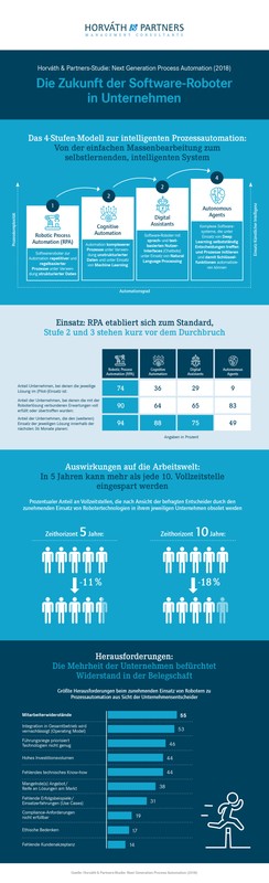 Horváth-Studie: Wirtschaft steht vor Automationswelle - jede zehnte Stelle in fünf Jahren obsolet / Roboter für Standardprozesse stehen kurz vor dem Durchbruch - Autonomous Agents mit „echter“ künstlicher Intelligenz noch Zukunftsmusik